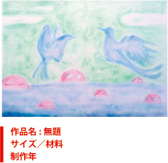 画材は主にパステルや水彩を使い、動物や人形、柔らかそうな生き物を描く。 静かで優しい中に怖さや痛みも感じるシュールな世界観。現在はデジタル画も制作している。個性的な色彩感覚で、微妙な風合いを出す。写真に撮るとその特徴的な淡いぼかしや色味がうまく再現できない。展示会などで実物を鑑賞してほしい。